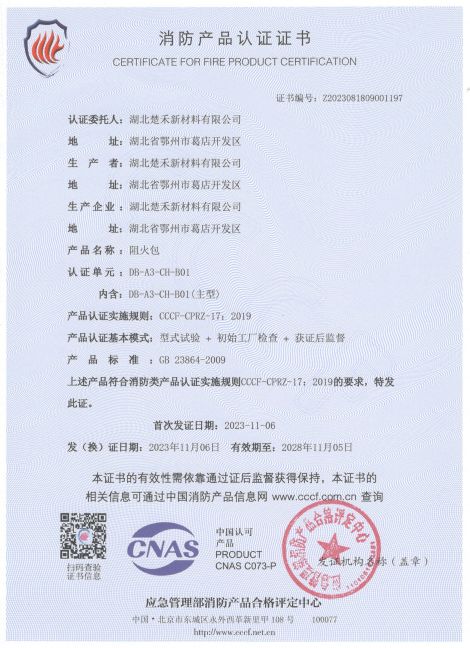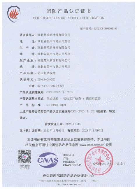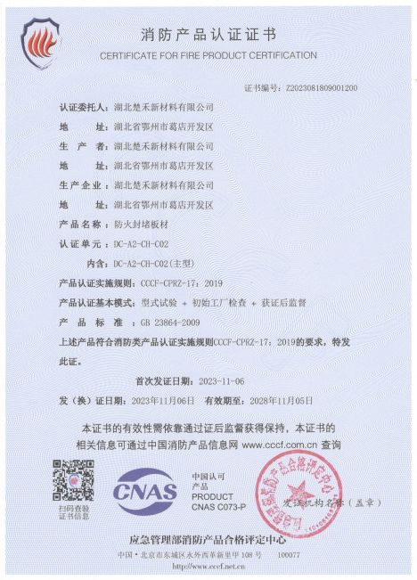 防火封堵板材 ( CH-C02 ) 3C認證證書